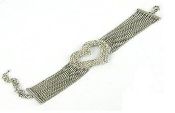 FINE CRYSTAL EMBEDDED HEART SHAPE INSERT CONNECTED WITH MULTI LINK STRANDS WITH LOBSTER CLASP SKU:657B0307