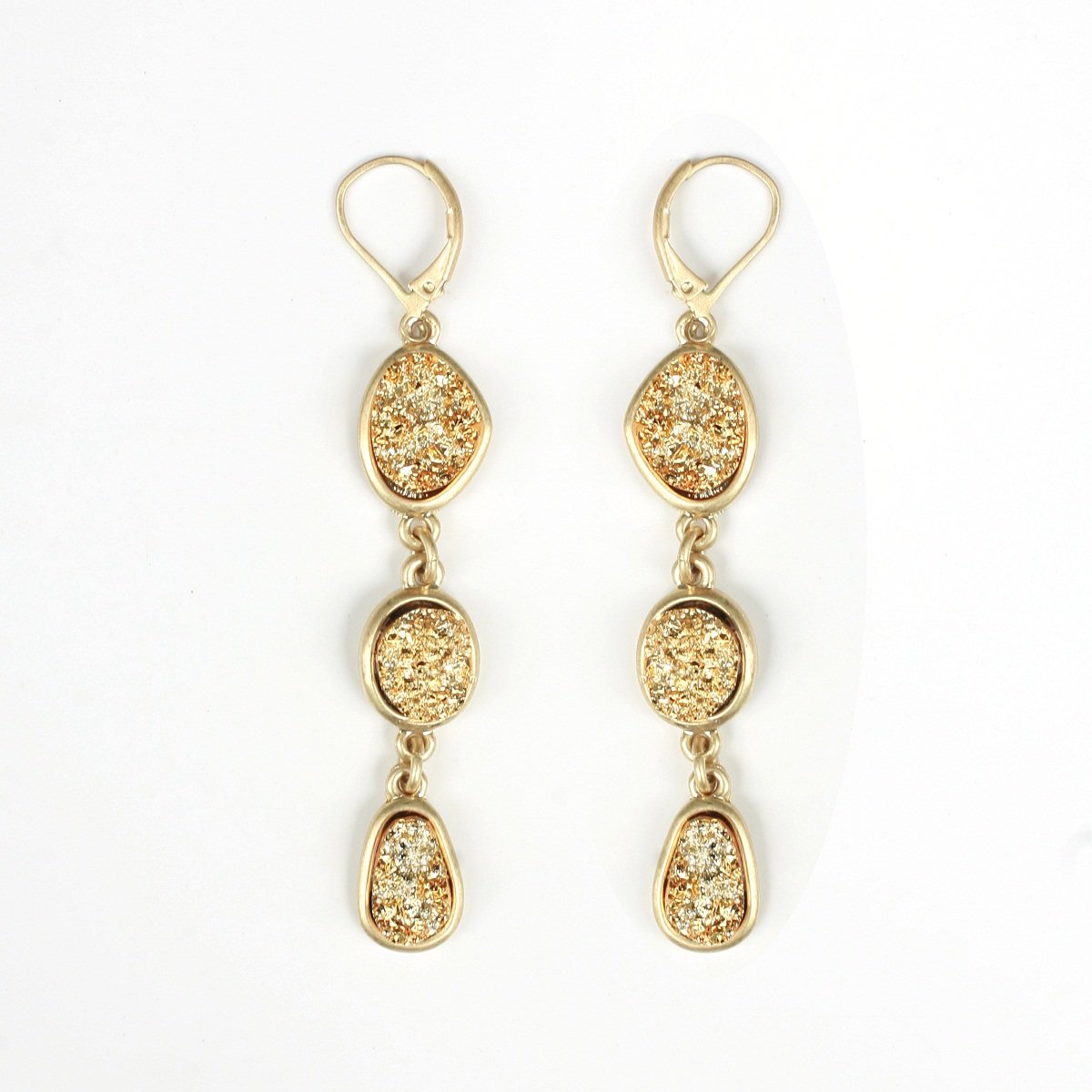 Vertical Free form Druzy stones set in Rich Gold Textured Satin Alloy Bezel Settings w/ Lever Back earrings